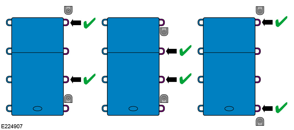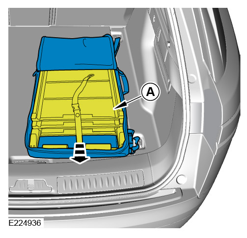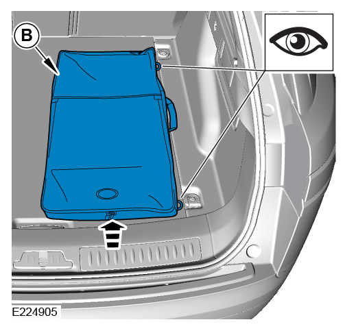 Place the storage bag (B) in the vehicle loadspace with the zip section facing rearwards. Position the storage bag D-loops in proximity of the vehicle loadspace D-loop anchor points.