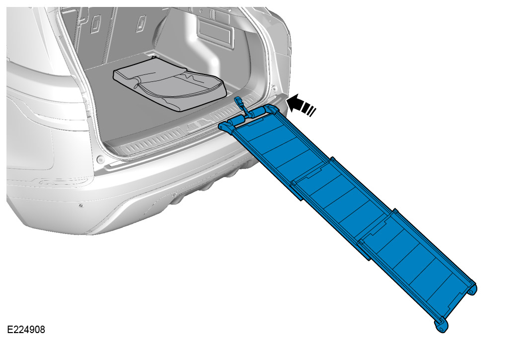 Place the pet access ramp securely on the rear bumper in line with the storage bag.